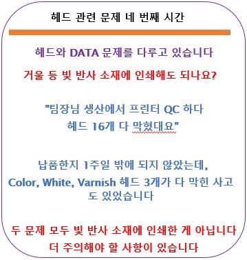 왜 거울등 반사 소재에 인쇄하지 않았는데도 헤드가 갑자기 막힌 이유는 나중에 설명 드리겠습니다.