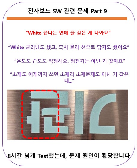- 정전기 때문에 나오는 문제라 생각하고 소재도 바꾸어보고,