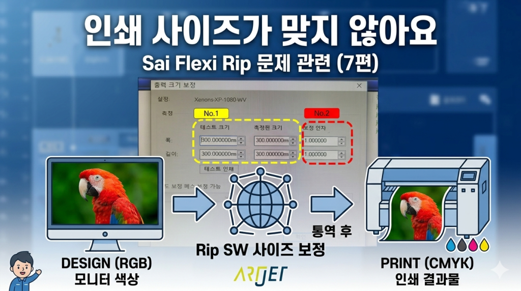 - Sai Flexi Rip에서 인쇄 사이즈를 보정하는 방법을 찾고 있는 분