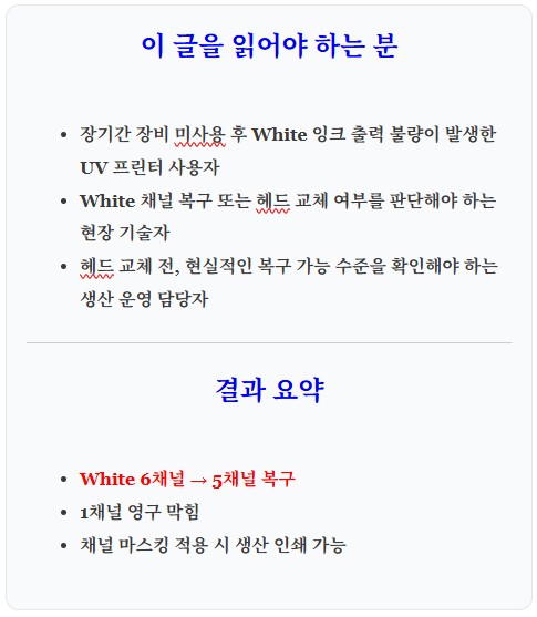 - White 채널 복구 또는 헤드 교체 여부를 판단해야 하는 현장 기술자