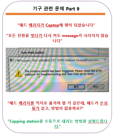 헤드 충돌 방지 센서가 Captop에 잼이 되었을 때 — 기구 관련 문제 (9편)