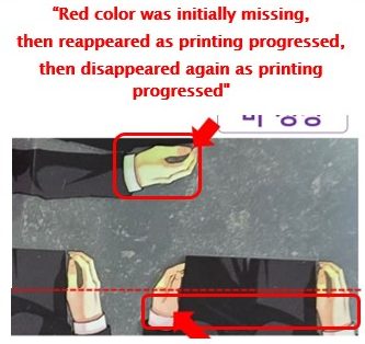 Jobs with heavy red/magenta areas can still show the original dropout symptom.