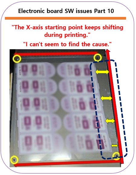 - All we could determine from the customer’s image was that the X-axis start position was drifting to the left during printing.